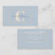 Este elegante design de cartão de visita apresenta um fundo azul pastel macio com um monograma de cor creme no centro, sobreposto com um nome manuscrito delicado. Perfeito para profissionais, criativos ou proprietários de pequenas empresas que buscam um estilo mínimo, mas personalizado. Uma escolha eterno e acessível para a rede diária.