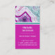 Monograma Moderno Chic Cartão de visita de Pedra Magenta Teal Inicial. Cristais e geodos de envelhecimento continuam sendo uma tendência favorita! Este impressão apresenta uma imagem de cima de um teal ou turquesa e de uma pedra geométrica roxa ou magenta rosa, completa com pequenos cristais e faixas brancas. Acentuado com um vibrante bloqueio de cores para lhe dar uma aparência moderna e moderna. Adicione a sua inicial para torná-la sua.