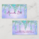 Glitter bonito e elegante e iridescente giratório goteja em cores púrpuras do arco-íris aqua unicórnio para criar um cartão de visita de na moda único especial. Belo, moderno e legal cartão para o modesto e apaixonante da arte. Este na moda lindo design seria um excelente para mulheres que apreciam designs modernos. Seja você um belicista, um cabeleireiro, um artista ou qualquer outra profissão moderna, mostre seu estilo pessoal, seja elegante, moderno e sinta-se na moda com um design único no seu cartão de visita ou personalize-o sobre outro produto de sua escolha. NOTA: Estes são gráficos impressos - sem brilho real, joias ou peças levantadas.