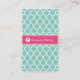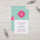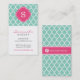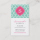 Cartão De Visita Monograma de Latice Quadrada Marroquina-Rosa e Aqu