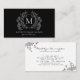 Cartão De Visita Monograma de repouso floral branco e preto moderno