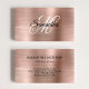 Crie seu próprio rosa metálico falso de ouro e cartões de visitas de folha de papel. A frente apresenta um monograma de escrita de caligrafia em rico preto e branco. A parte traseira contém informações básicas de contato. Personalize as fontes e o texto conforme necessário para sua pequena empresa. Todos os elementos gráficos e elementos femininos neste design serão impressos como uma foto digital.