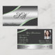 Mostre elegância e inovação com este modelo de cartão de negócios clássico. A design apresenta cores prateadas brilhantes em cinzas escuras com bonito linhas de decoração prateada curvas e curvas em verde-claro. Personalize facilmente este cartão de visita para a sua marca e para a sua fotografia (funcionário). Tudo que você vê é uma folha de papel suja, mas uma design de impressão de qualidade. ♡ pelo SEU FAVORITO - designs :-) Fornecimentos comerciais modernos e profissionais. ♡ muito prazer com este ponto. ♡ www.zazzle.com/store/your_favorite ♡ www.zazzle.com/store/favorite_markeplies ♡