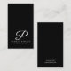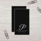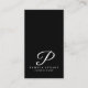 Um design elegante preto e branco com monograma branco de script elegante com informações comerciais em estilo de fonte profissional branco em fundo preto. Perfeito para uma maquiadora, designer, estilista, consultor, corretor de imóveis e muitas outras profissões.
