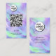 Atualize sua imagem de negócios com este na moda e elegante Cartão de visita de Monograma Holográfico de Código QR. Este design moderno combina um efeito holográfico elegante com um toque de sofisticação profissional. O recurso de código QR permite que os clientes em potencial acessem facilmente suas informações de contato e seu site com uma varredura simples, simplificando suas conexões de negócios. O cartão de visita atraente vai atrapalhar seus clientes e deixar uma impressão duradoura, adicionando um toque de classe à sua marca comercial. Perfeito para salões de unhas, salões de cabelos, e artistas de maquiagem, esses cartões de visitas vão fazer você se destacar da competição. Para obter melhores resultados de impressão, use o acabamento de semirbrilho.