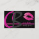 Cartão De Visita Monograma, lábios rosa quentes