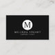 Um na moda minimalista preto-e-branco, com um monograma preto em círculo branco, com informações comerciais em estilo de fonte profissional branco, em fundo preto. Perfeito para uma maquiadora, designer, estilista, consultor, corretor de imóveis e muitas outras profissões.