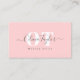 Escrito chic moderno e design monograma sobre fundo de rosa claro, simples e elegante, cartão de visita personalizado profissional para maquiador, planejador de eventos, designer gráfico, notário público e qualquer outra ocupação.