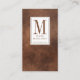 Cartão De Visita Monograma Mínimo Textura de couro castanho de caca