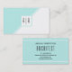 Cartões de visitas modernos de arquiteto azul-aqua e monograma branco A frente inclui duas faixas diagonais um aqua azul e um branco que separam a placa em dois triângulos.