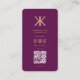 Cartão de visita profissional Dourado roxo e monograma moderno K Luxury, com código QR, pode ser facilmente personalizado junto com a linha de recursos para tornar um design tão único quanto você! Precisa de ajuda? Sinta-se à vontade para me contactar usando o botão de mensagem na página do produto. Tenho o prazer de ajudar com a sua personalização, itens adicionais ou pedidos personalizados.