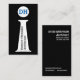 Cartões de visitas arquiteto cartões de visitas brancos azuis pretos, exibindo uma coluna branca sobre fundo preto, um círculo acima da coluna com seu monograma/iniciais em azul e seu texto. Personalize-o com seu texto e adicione seu logotipo.