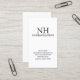Cartões de visitas modernos com um simples e mínimo design preto e branco com seu monograma em uma fonte em negrito junto com seu nome no topo. Abaixo estão suas informações de contato.
