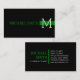 Cartão De Visita Monograma preto moderno verde comum