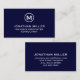 Eleve seu jogo de rede com este Marinho Simples de Monograma Azul e Branco. O design minimalista apresenta um monograma branco na moda num fundo azul-marinho elegante, associado a tipografia clássica que pode ser personalizada para mostrar o seu nome e informações de contato. Este cartão de qualidade superior é perfeito para empresários, freelancers e profissionais que querem dar uma primeira impressão memorável.