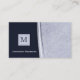 Um cartão de visita sofisticado do monograma dos azuis marinhos com uma imagem de uma pena de prata contemporânea à moda. Personalize este cartão de visita moderno e profissional do estilo adicionando sua inicial monogrammed. A imagem impressa do plano, nenhuma gravação ou a textura aplicaram-se.