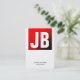 Cartão De Visita Monograma vertical simples branco-vermelho único d