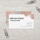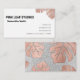 Personalize facilmente o texto desses cartões de visitas modernos cintilantes com folhas de ouro rosa Monstera.