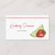 A ilustração de Destei de um morango vermelho junto com uma fatia de uma fruta de citros limão verde. O topo tem uma pequena borda com duas linhas finas em que uma das linhas está em cor vermelha e a outra em cor verde. Há também áreas de texto personalizáveis para um nome, profissão e informações de contato neste cartão. Ideal para quem trabalha na área da saúde e bem-estar ou na área temática da comida, por exemplo.