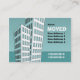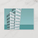 Um modelo de cartão de mudança com um desenho de cartoon de blocos de apartamentos. Pronto para ser personalizado com os seus novos detalhes. O design no verso é o mesmo que o da frente sem o texto.