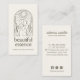 Este cartão de visita de bico branco apresenta um logótipo elegante da silhueta feminina adornada com folhas delicadas e uma lua crescente, tudo colocado dentro de uma trama de arco graciosa numa paleta monocromática quente orgânica de sábio escuro e marfim. A frente da placa destaca esse design impressionante ao lado de duas linhas de texto personalizáveis, ideais para mostrar seu nome de empresa e seu slogan. No verso, você tem espaço amplo para seus detalhes de contato e ícones de mídia social, garantindo comunicação perfeita com seus clientes. Projetado com bem-estar e serenidade em mente, este cartão é uma excelente escolha para salões de beleza, centros de bem-estar, spas, esteticistas, butiques de skincare, terapeutas de massagem, médicos holísticos, estúdios de yoga, centros de meditação, treinadores de estilo de vida, especialistas em aromaterapia e varejistas de produtos naturais. Os tons quentes e úmidos criam uma estética calma e convidativa, fazer-a ideal para empresas focadas na beleza, relaxamento e autocuidado.