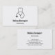 Cartões de visitas com temas médicos com um estetoscópio simples de cinza colocado sobre um fundo branco. Design minimalista elegante.
