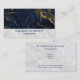 Cartões de visitas com um fundo na moda e elegante de marinho azul e mármore dourado. A parte inferior do design também tem um padrão de mármore branco fora, com seu texto personalizado escrito por cima.