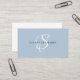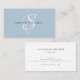 A design de cartão de visita de na moda monograma da moda da moda apresenta sua versão inicial em um lindo roteiro de caligrafia com flores que envolvem seu nome. No verso está o espaço para seu título profissional, informações de contato, mídia social e seu endereço de site. Esta versão está na combinação empoeirada azul e preto/branco.