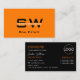 Cartão De Visita Na moda Orange Black Modern com Monograma e Logoti