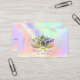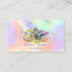 Cartão de visita de na moda elegante com lótus e círculos dourados em fundo holográfico.
