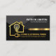 O cobrir apresenta um design de circuito de fiação dourado criativo com uma guia dourada perto do centro. Por cima, está o seu nome prestigioso e o título do cargo, com o nome comercial e os detalhes de contato perto da base do cartão. No verso, em um cobrir preto, o logotipo de tomada de energia dourada que você pode usar está no topo. A isto segue-se o seu nome prestigiado, os dados de contato e uma opção de slogan para divulgar a sua empresa. Um excelente para temas elétricos.