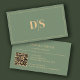 Cartão De Visita Natural Minimalist Muted Green Initials QR Code