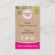 Um cartão de visita natural orgânico para o setor da saúde ou para as empresas orientadas para a natureza ou para os cuidados naturais da pele, a comida ou a alimentação saudável. Ele tem um fundo de papel kraft castanho, com padrão de folhas verdes e sotaques de rosa quente por um pouco de diversão. Excelente também para estabelecimentos de saúde, terapeutas holísticos, clínicas termais naturais, pessoas orientadas para indústrias vegetarianas, vegetarianas e vegetarianas e similares, todas naturais, biológicas.