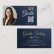 Cartão De Visita Navy Blue Gold Photo Realtor QR Code Metallic