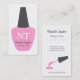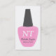 Um cartão de visita moderno e contemporâneo com uma garrafa cor-de-rosa do verniz para as unhas com espaço para a personalização do monograma. No reverso é a escova do verniz para as unhas. Excelente para maquilhadores, estilistas e aqueles nos negócios da beleza, do cabelo e do salão de beleza, dos termas, do pedicure e do manicure.