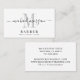 Simples cartão de visita de cabelos barbeiros modernos. Um tipo de script de tendência simples e minimalista. Preto e Branco.