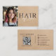 Cartão De Visita Neutral Beige Suede Hair Stylist Photo QR Code