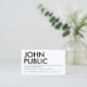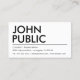 Um simples cartão de visita branco simples mostrando seu nome em letras grandes e negrito. O seu título ou serviços, bem como o seu endereço e outros contatos, são apresentados abaixo do seu nome. Este é um simples design branco, ousado e clássico, que pode ser totalmente personalizado com suas ideias ou simplesmente usado como está. Esta design moderna e profissional mostra que o branco simples e simples pode fazer uma declaração ousada. Este modelo branco comum profissional faz parte da coleção de cartões de visitas simples do Design J32.