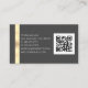 Um design elegante de mármore branco e dourado com banda de ouro escovada. Personalize seu nome, monograma, ocupação, código QR e informações de contato no verso. A parte de trás é cinza escura com texto branco e banda de ouro escovada.