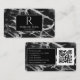 Cartão De Visita Nome & Monograma, Código QR, Mármore Preto & Cinza