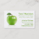 Um cartão de visita nutricionista muito limpo e profissional com uma maçã verde sobre um fundo branco limpo e nítido. cartão de visita de excelente para nutricionistas, profissionais de saúde e especialistas em dieta. O texto também está em uma cor verde nítida com uma fonte moderna. Toda cor e fonte de texto é totalmente personalizável com a "Personalizar! "botão.