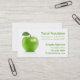 Um cartão de visita nutricionista muito limpo e profissional com uma maçã verde sobre um fundo branco limpo e nítido. cartão de visita de excelente para nutricionistas, profissionais de saúde e especialistas em dieta. O texto também está em uma cor verde nítida com uma fonte moderna. Toda cor e fonte de texto é totalmente personalizável com a "Personalizar! "botão.