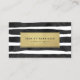 Um cartão de visita listrado com as listras pretas pintadas da aguarela e uma folha de ouro chiques, modernos do falso. Adicione detalhes da empresa à parte traseira do cartão.