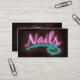 O estilo de néon prega o cartão de visita do sinal para proprietários das tecnologias e do salão de beleza do prego.