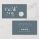 Cartão de inserção simples para pequenas empresas com um texto retrorreflector giro que diz "obrigado você". Você pode adicionar seu logotipo e uma mensagem simples no verso, juntamente com suas mídias sociais e informações do site. A cor está em azul de aço.