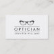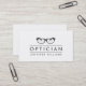 Um cartão de visita moderno para os ópticos. O design de cartão de visita mostra um par de óculos com seu nome comercial entre duas linhas divisoras e seu nome. O verso inclui todos os seus contatos. Ópticos determinam as especificações de vários aparelhos oftálmicos, como lentes de contato, lentes de óculos, aparelhos de baixa visão ou próteses oftálmicas que darão a correção necessária à visão de uma pessoa.