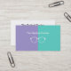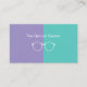 Na moda, loja ótica de tendências e modelo de cartão de negócios oftalmologista criado em cores agradáveis nos olhos com imagem de óculos e nome comercial na frente com seus detalhes do Optician do outro lado. Projetado para um oftalmologista, loja de óculos ou centro de oftalmologia.