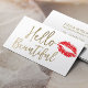 Olá Belo Artista Makeup Dourado Tipografia Lábios Vermelho Cartão de visita.