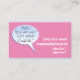 Este é um cartão de visita cor-de-rosa legal para professores de inglês (ou qualquer outro professor de língua) que diz 'Olá! Como você está? Vamos fala inglês!' dentro é um discurso divertido de bolha azul-claro! Seu nome e título estão em branco e seu número de telefone, email e endereço estão do outro lado.