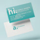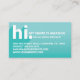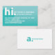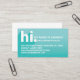 Faça uma primeira impressão de um excelente e apresente-se a clientes potenciais com nossos cartões de visitas "oi, meu nome é". O design apresenta "hi" num design tipográfico moderno com uma sombra diagonal de texto. O gradiente de na moda teal acrescenta um olhar ousado moderno. Personalize com seu nome, título e informações de contato. O reverso é projetado em estilo mínimo limpo com monograma personalizado e identificador de mídia social.